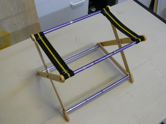 Ach ja, und es hat jetzt endlich zu einem auseinandernehmbaren Klappständer gelangt, der eigens neu angefertigt wurde (und schon seit Jahren auf der to do Liste stand).