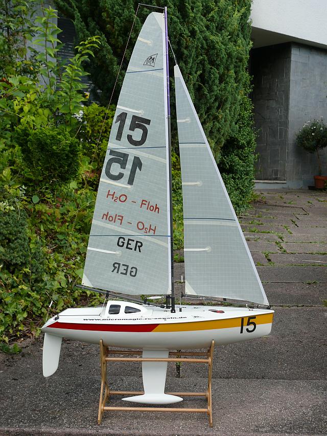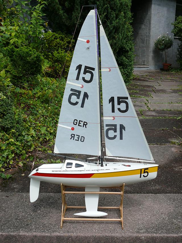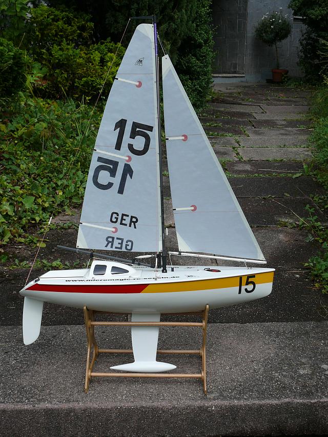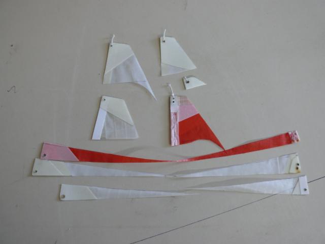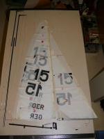 Dazu habe ich noch uralte Segelsätze (noch von 1997…) rausgekramt (kann die einfach nicht wegwerfen), die zwar im Lauf der Zeiten schon verändert wurden und zuletzt 2005 für einen Mittelmeerurlaub dienten, jetzt aber noch mal auf das neue Urlaubs-Rigg angepasst wurden. Auch ein aus der Anfangszeit des MM-Regattatums stammender ausrangierter Bahnensatz fand noch Verwendung, auch wenn das 19g/m² Material nicht ganz feuchtigkeitsbeständig ist.