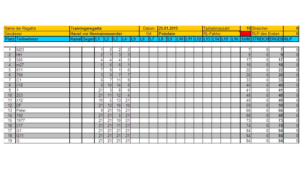 | Absage!! MM Neujahrsregatta (RL) in Potsdam am 10.01.2016 | GER-11 | 18 | 2.386 |