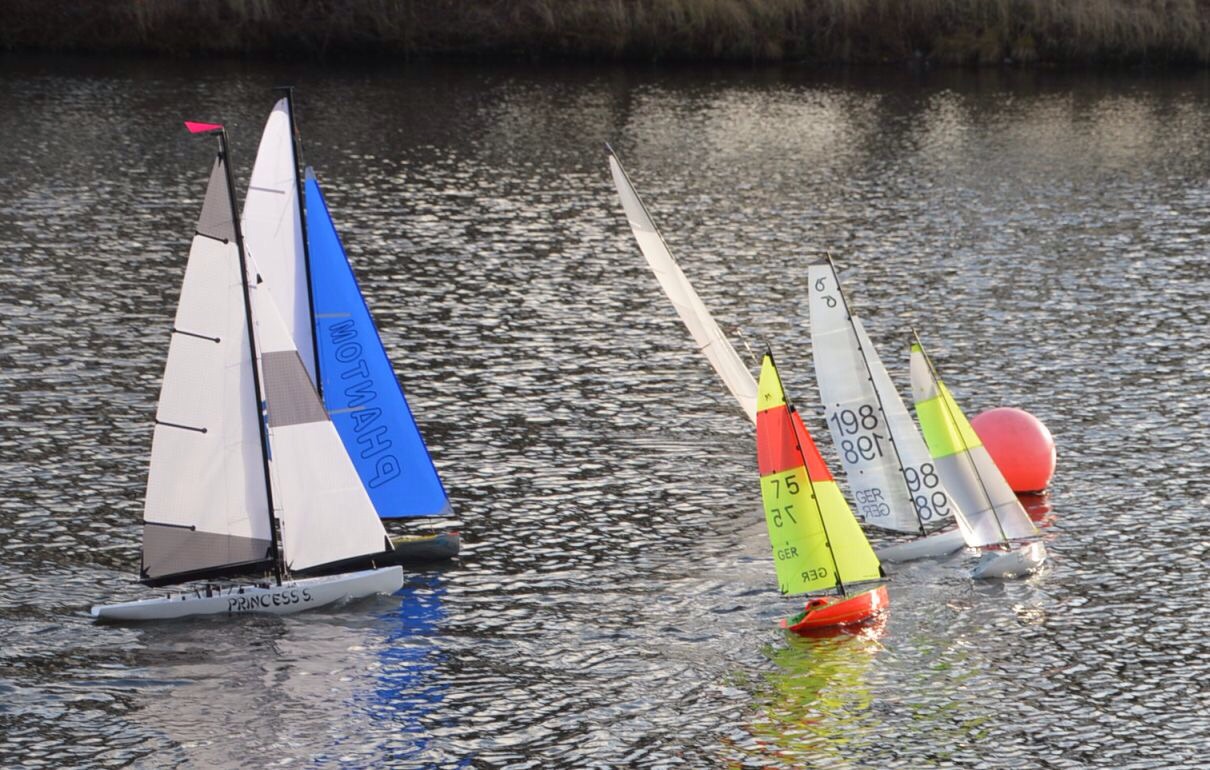 Meistens sind zwischen 5 und 10 Boote auf dem Wasser. Überwiegend werden Micro Magic bewegt, aber dazwischen fährt auch mal eine RG 65 und neuerdings auch einige 1 Meter Boote der uHu Klasse.
