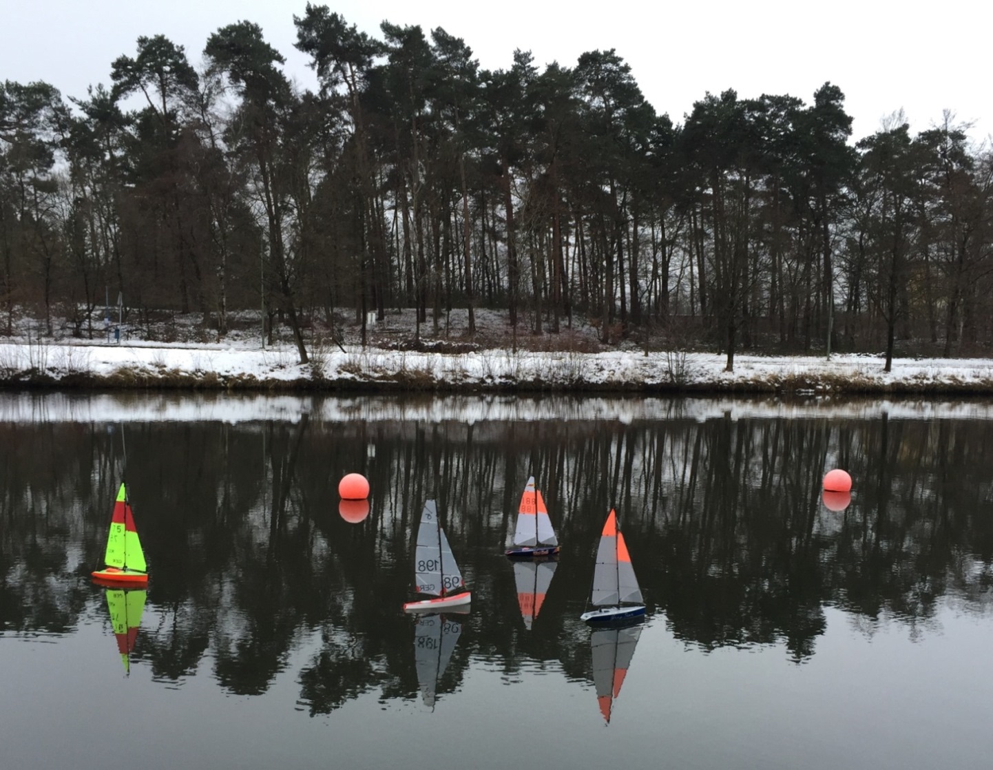Mittlerweile hat sich eine kleine Gruppe etabliert, die sich über die Wintermonate in Bielefeld Sennestadt am Stadtteich (Lindemann-Platz) fast jedes Wochenende zum Segeln trifft.