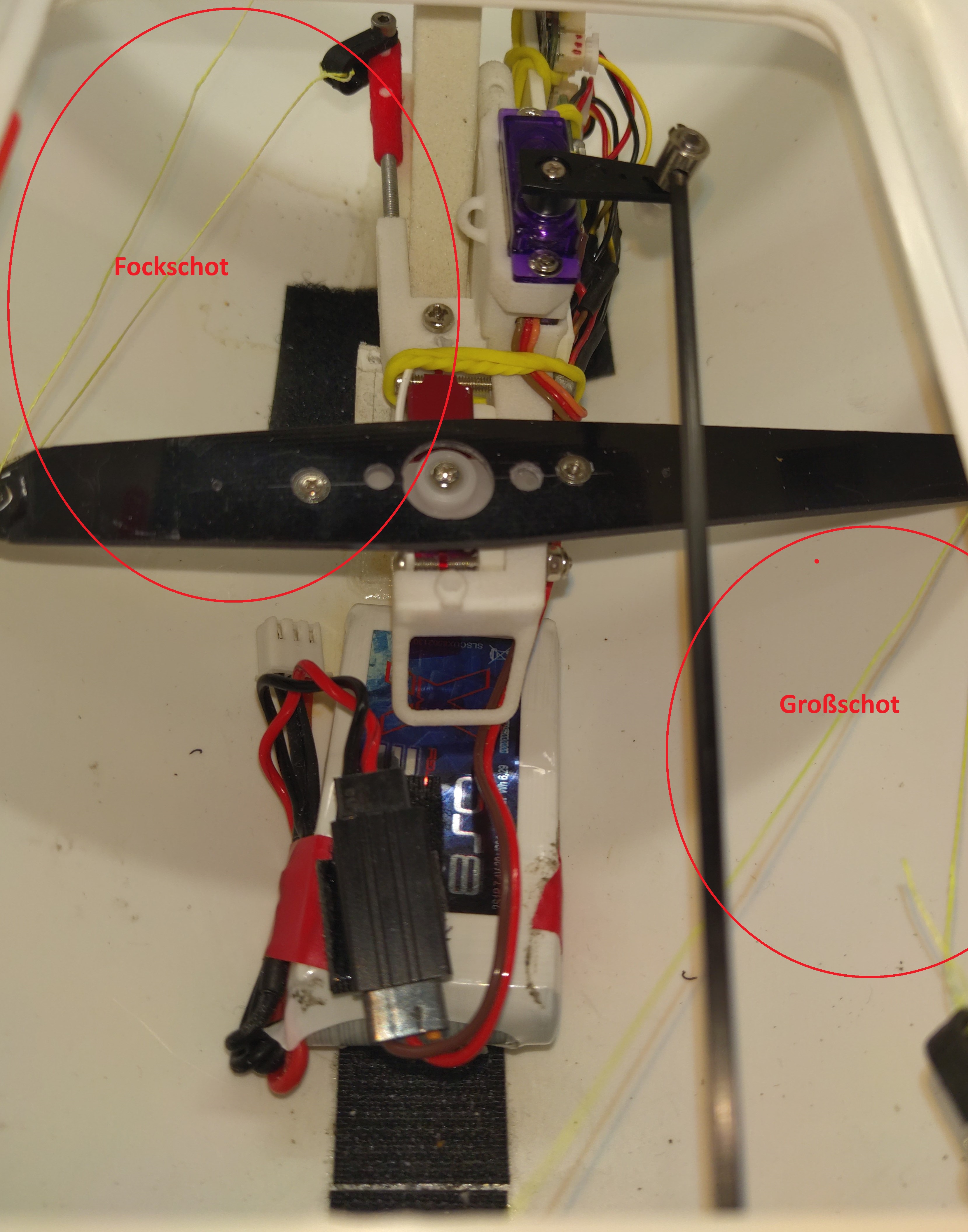 Durch diese Anordnung kommen sich Schoten und RC - Technik im Rumpf eher nicht ins Gehege.