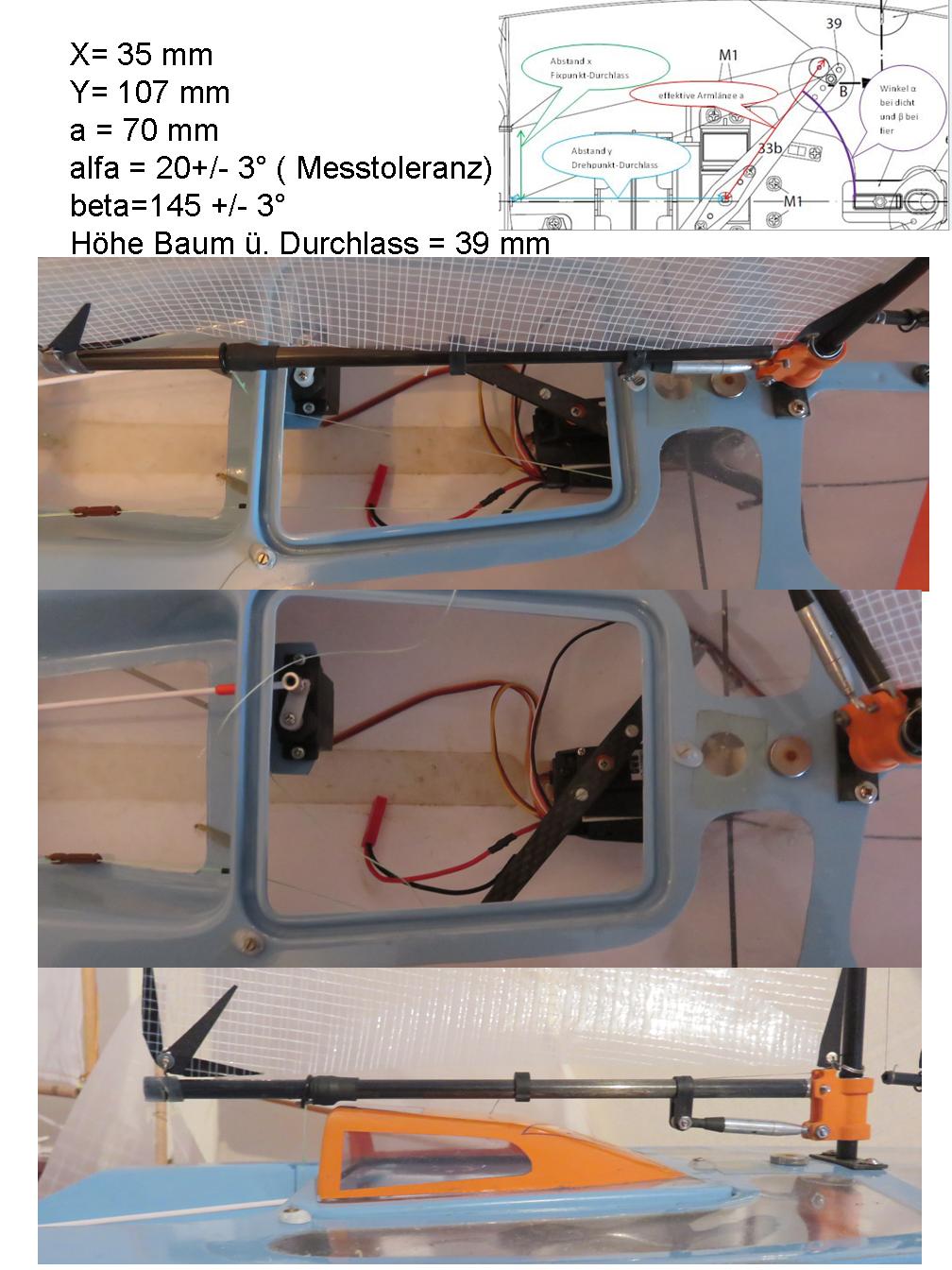 Wenn man die MM konstruiert und dafür errechnet hat, dass es ein gegebener Servo mit der Segelfläche bei bestimmter Windstärke schafft, braucht man nur noch den zum Servoarm passenden Anlenkpunkt zu suchen und ist fertig. So einfach ist das!